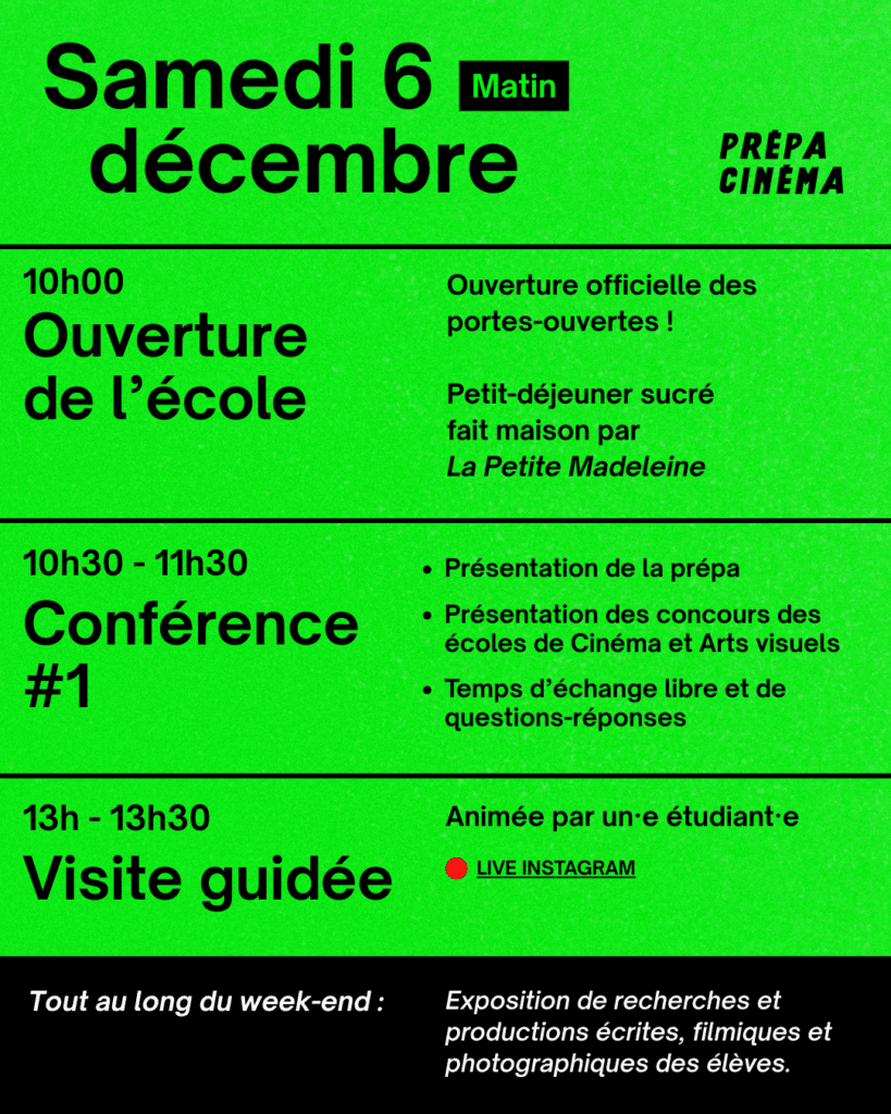 Nous avons l’honneur de vous convier aux premières portes-ouvertes de Prépa Cinéma !